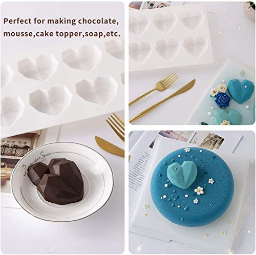 ♦Design e dimensioni: 1 stampo in silicone a forma di cuore a forma di diamante 3D, 29,5 x 17,2 x 2,5 cm. Dimensioni della cavità: 6,5 x 5,5 cm.