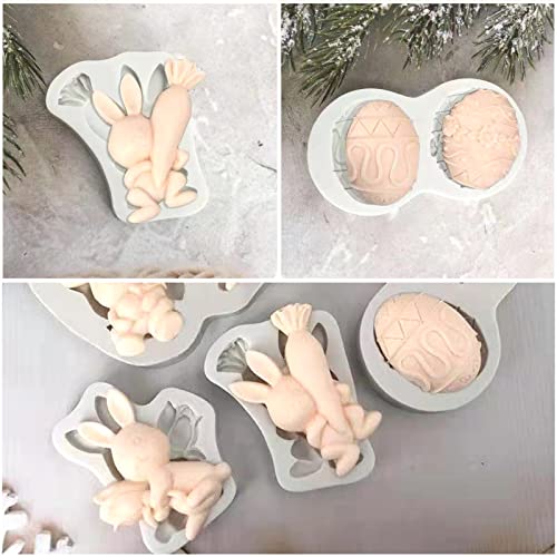 Stampo in Silicone per Pasquali,4 Pezzi Stampo Uovo di Pasqua,Stampo in Silicone a Forma di Coniglio,Stampo per Torta Coniglietto,Stampo 3D per Uova di Pasqua,Fondant Silicone Stampo Coniglietto