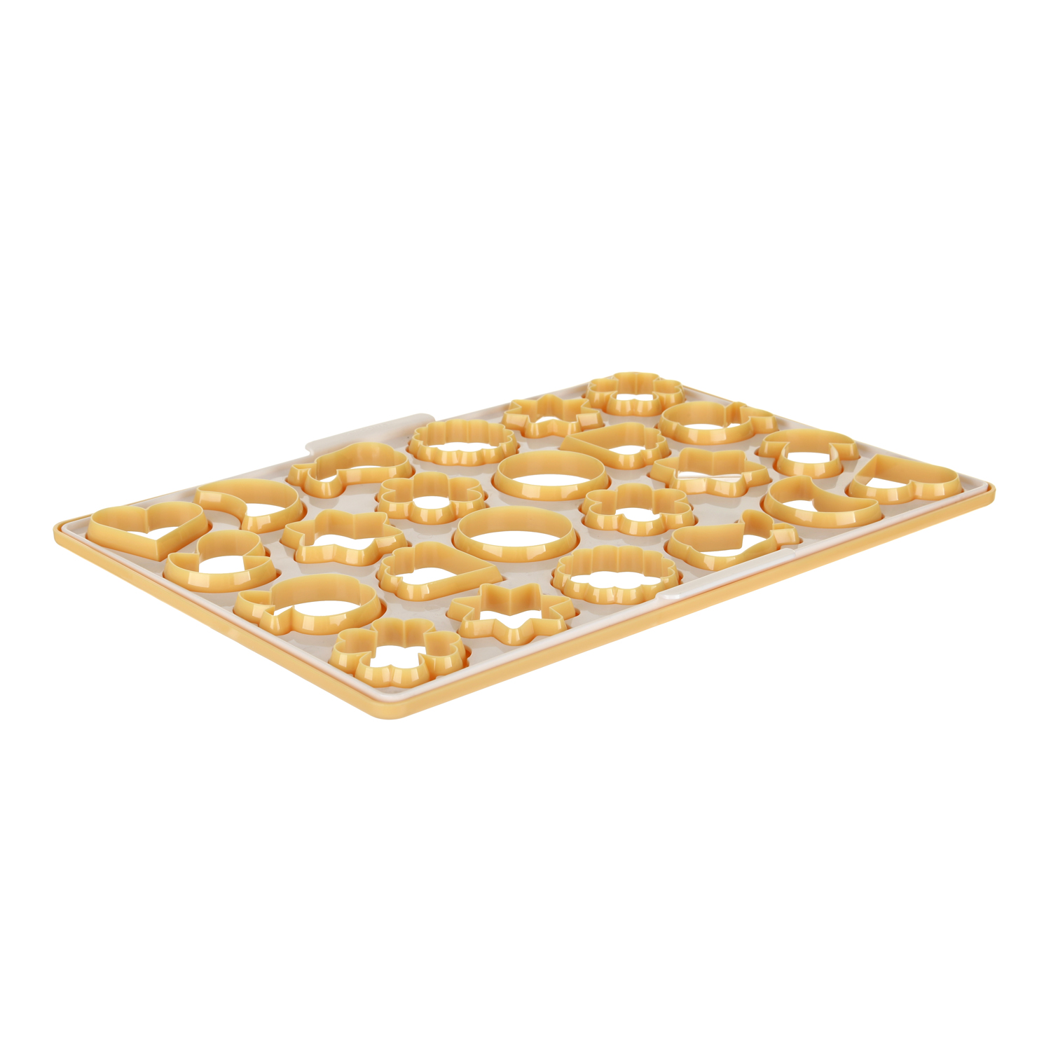 La forma tagliabiscotti Tescoma vi permetterà di ottenere composizioni assortite di dolci in modo facile e veloce. La struttura forata permette di facilitare l'espulsione dei prodotti consentendo l'introduzione di strumenti o dita per staccare l'impasto dallo stampo. Grazie alla forma unica è possibile ottenere numerosi biscotti con un solo impasto, è sufficiente stendere la pasta sulla superficie dello stampo e applicare una delicata pressione con un matterello. Lo stampo in melammina è facile da pulire e può essere lavato anche in lavastoviglie.