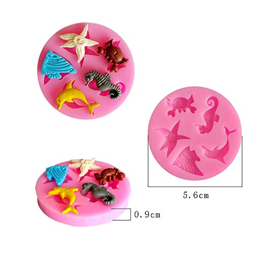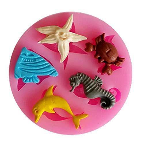 Stampo per torta in silicone per fare zucchero fondente, motivo: animali marini in 3D (delfino, stella marina e granchio)