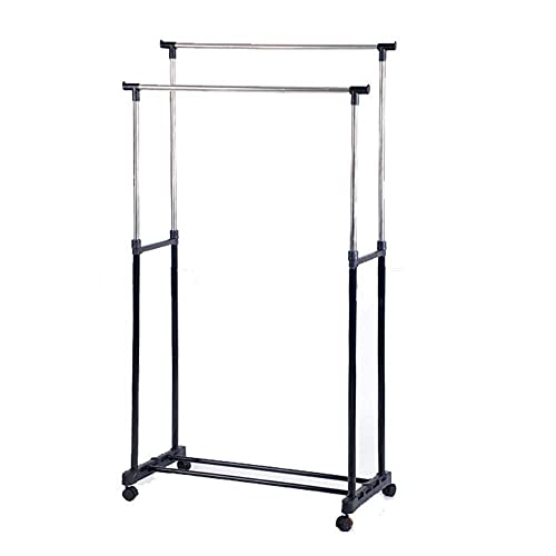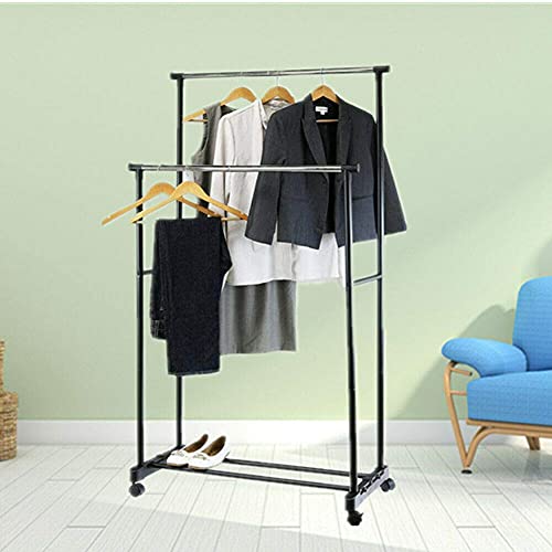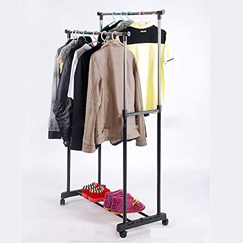 Stand Appendiabiti, Appendiabiti Regolabile in Altezza, Doppie Barre in Metallo, con Rotelle, Barre Inferiori per Scatole e Scarpe Organizzazione, Stendibiancheria per Il Deposito di Abbigliamento