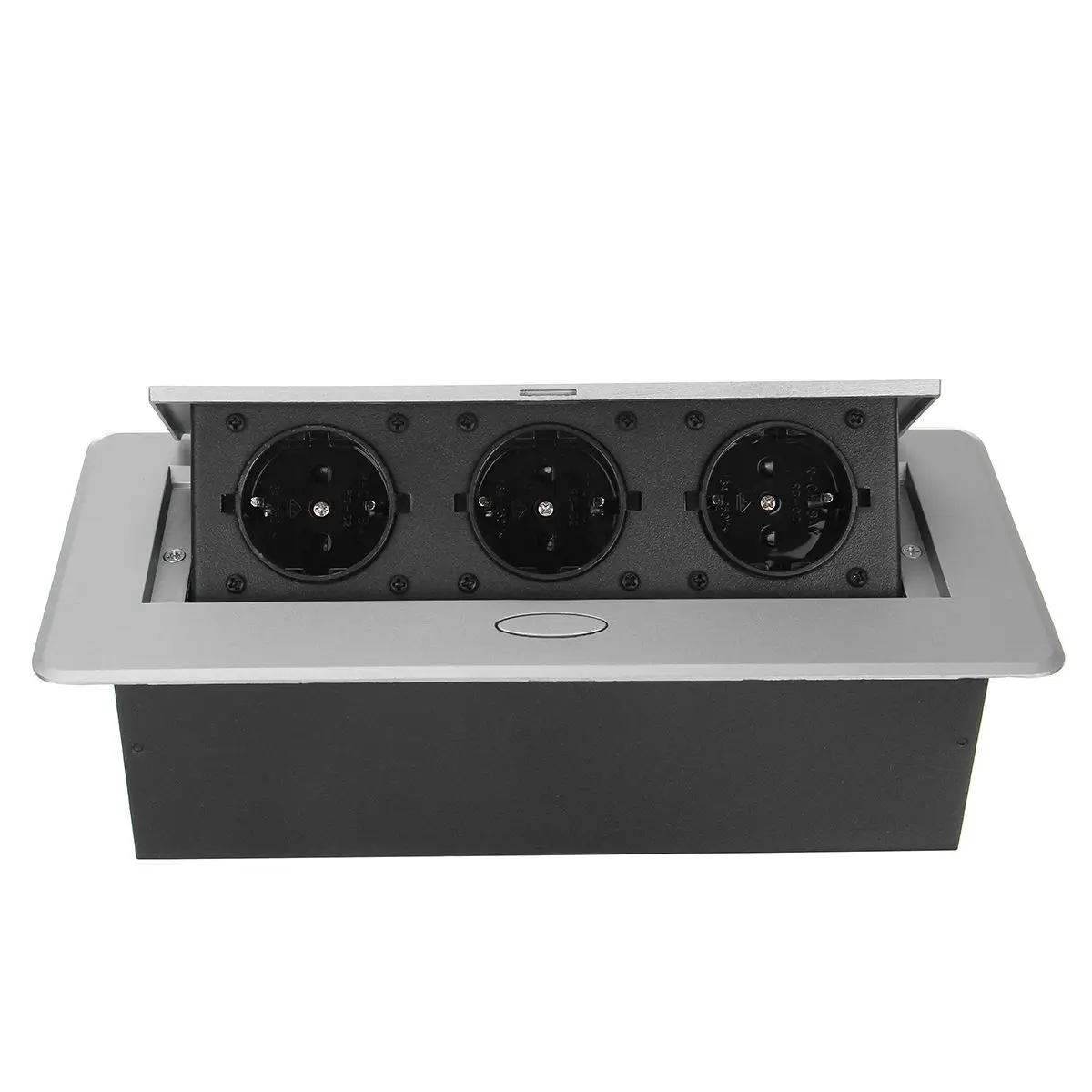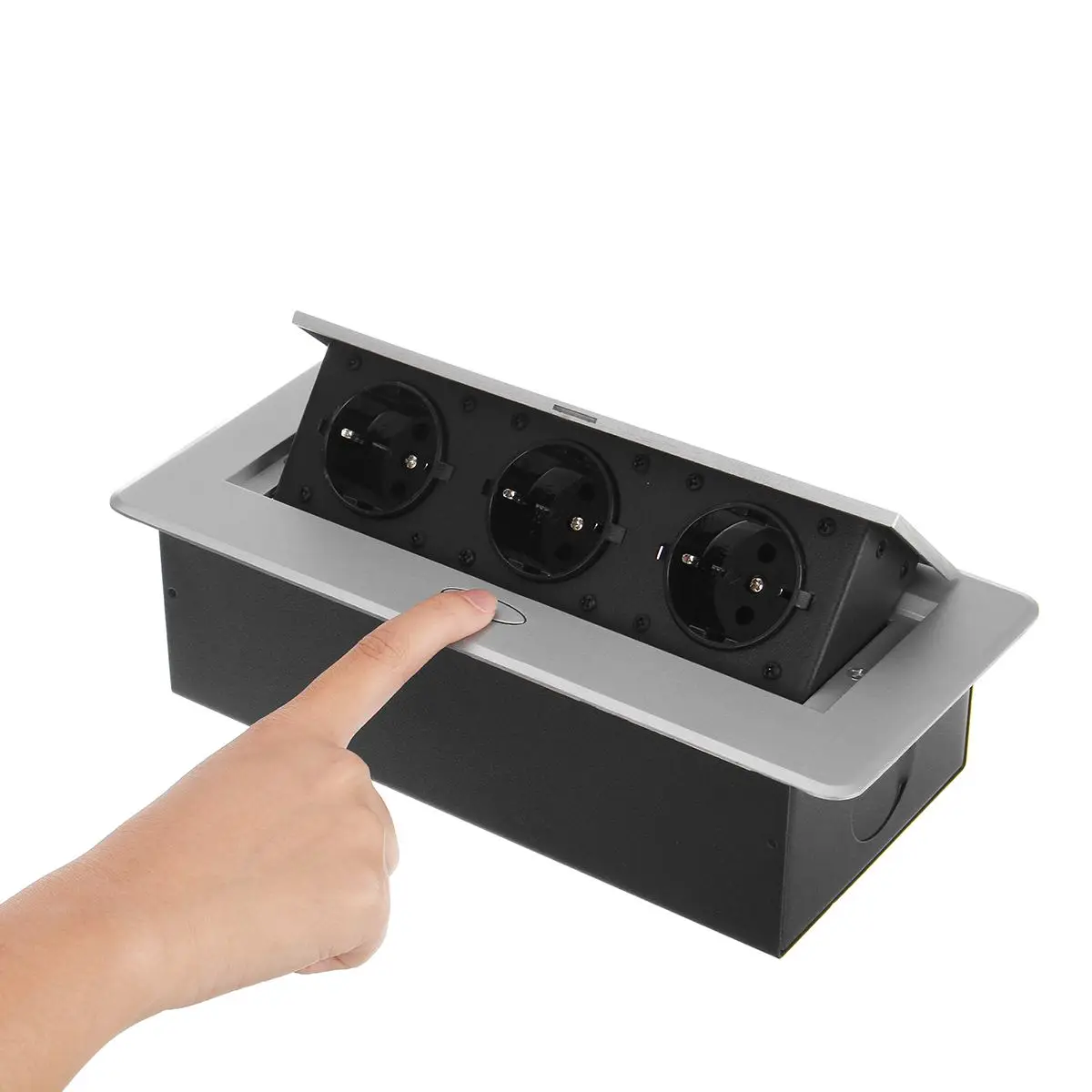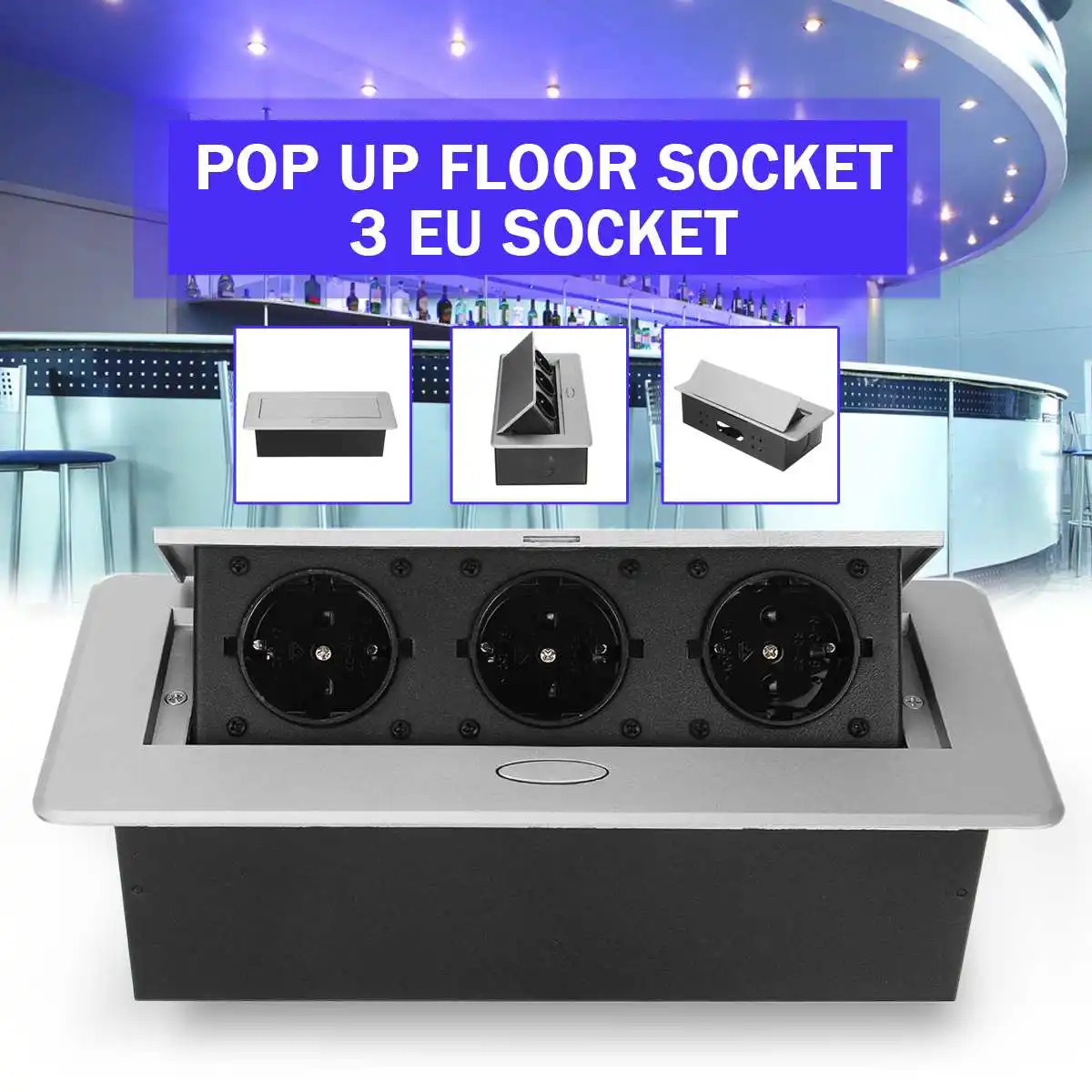 EU Standard 3 Way All Aluminum Panel Up Floor Socket Electrical Outlet Modular Combination Customized Available