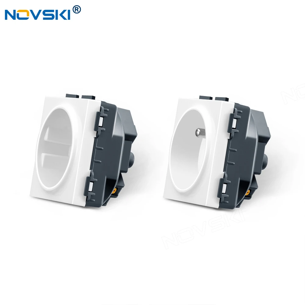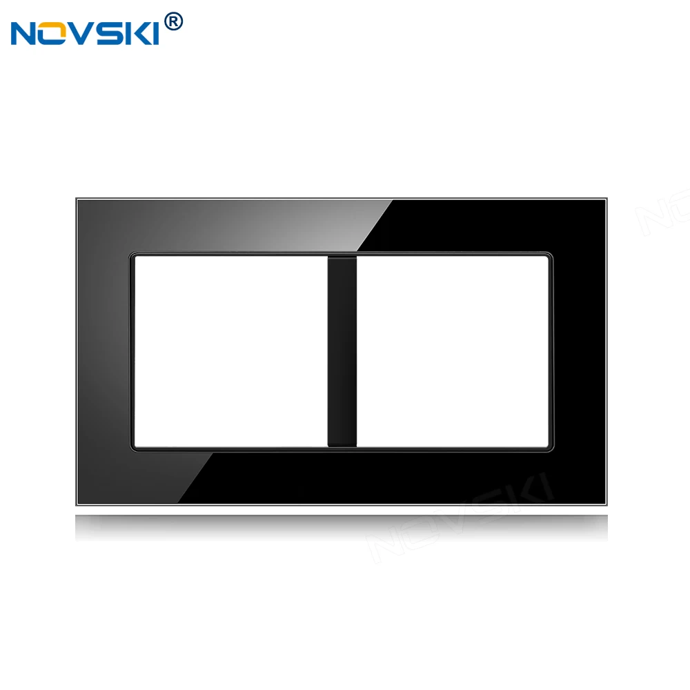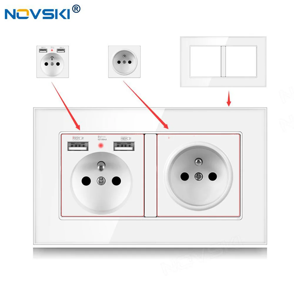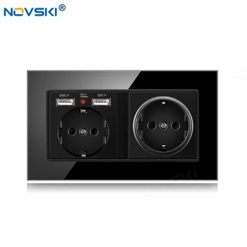146 EU Standard DIY Double Frame Switch Socket, Schuko Outlet 2 Frame, 2.1A Dual USB Charging Port, German Bayer Base, Black