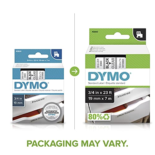 D1 Standard Tape Cartridge for Dymo Label Makers, 3/4in x 23ft, Black on Clear