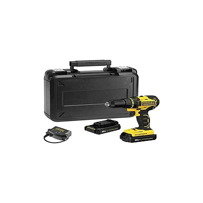 STANLEY FATMAX FMC608C2K-QW - Trapano avvitatore senza spazzole da 18 V, 55 Nm, 2 batterie al litio da 1,3 Ah e custodia