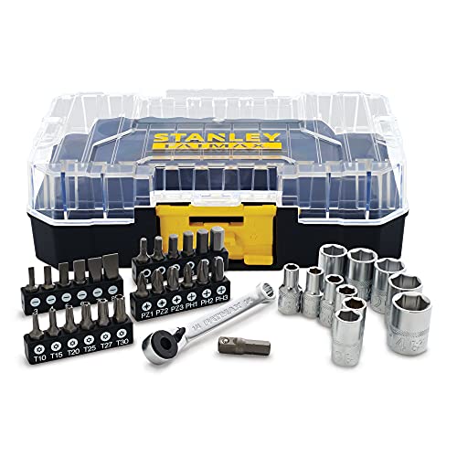 Stanley fmmt19101-0 set bussole e inserti 37 pz att.1/4" con chiave porta inserti a cricchetto