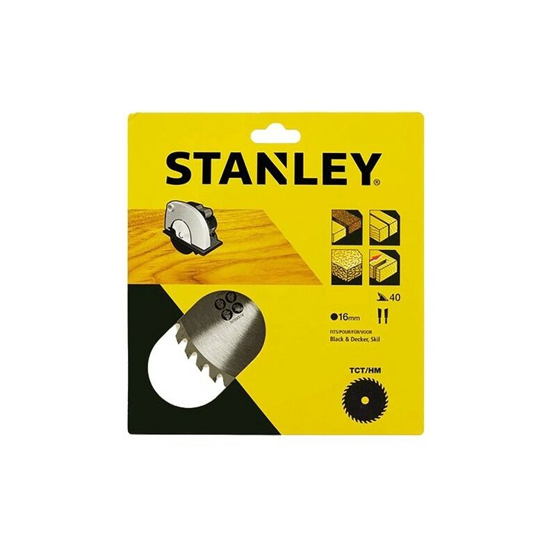 STANLEY LAMA PER SEGA CIRCOLARE DENTI MEDI DIAMETRO 170MM FORO 16MM STA13125 Al carburo di tungsteno. Indicato per tagli trasversali puliti su legno tenero e duro.