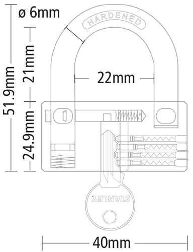 Stanley Lucchetto a Tamburo, Arco in Acciaio Riforzato, Corpo in Ottone Massiccio 40 mm, 3 Chiavi, S742-046