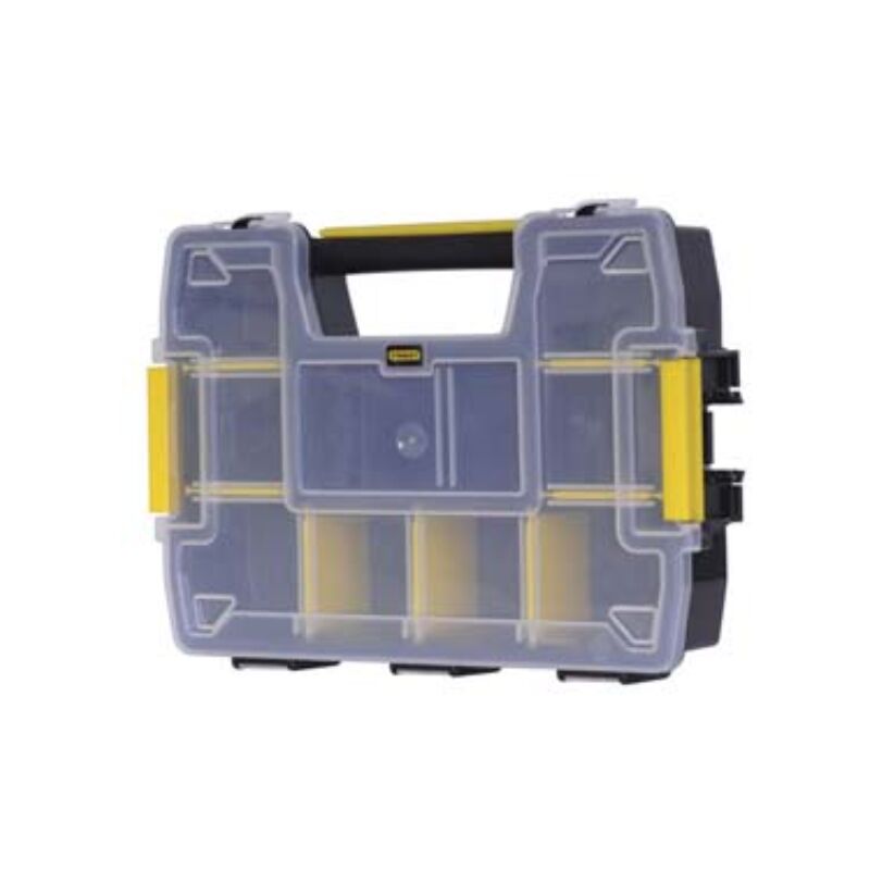 Cm.29,5x21,5x6,5h. (stst1-70720) organizer in polipropilene con speciale struttura dei divisori interni che consente di ottenere spazi a 90° - cerniere laterali che permettono di sovrapporre fino a tre unità - speciale configurazione del coperchio che impedisce lo spostamento del contenuto tra uno scomparto e l'altro - capacità di carico kg.2,5 Categoria merceologica: Portautensili e portaminuterie - Utensili manuali - Cassette portaminuterie