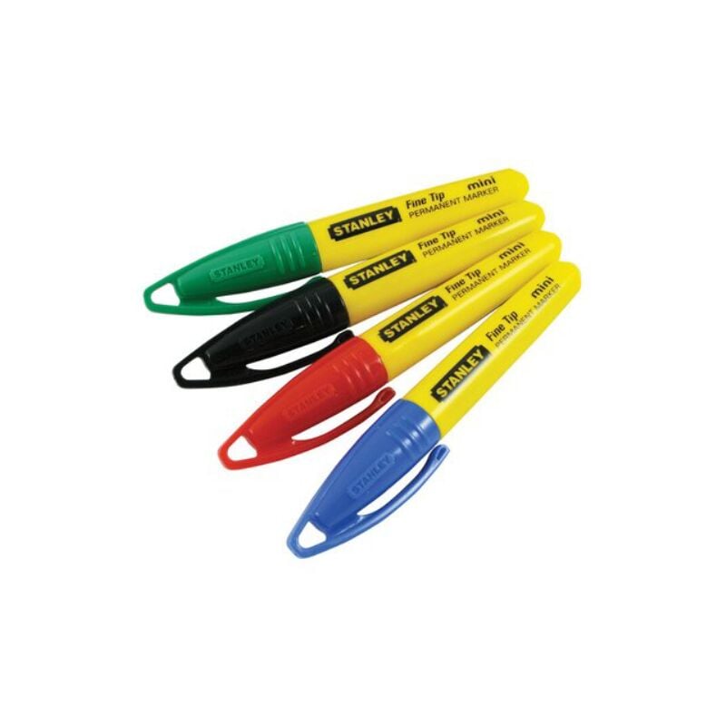 Pennarello mini 1-47-329 stanley Colori assortiti punta fine cf=pz 72 punta fine. indelebile sulla maggior parte delle superfici. inchiostro resistente all'acqua. adatto per marcare cemento, tegole, utensili, legno, metallo, e tubature. confezione in contenitore self-service con tappo. colori assortiti.