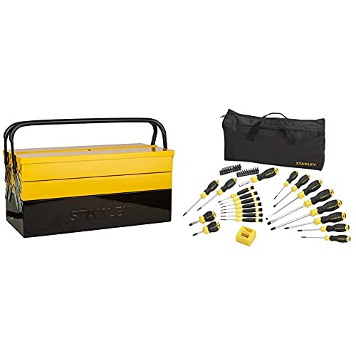 StanleySTANLEY 1-94-738 Cassetta porta utensili in metallo & 62113 Kit Serraggio, Set giraviti 42 pezzi