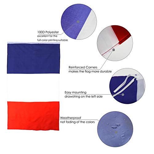Bandiera della Francia (Drapeau France poly bannière) in poliestere antistrappo, resistente al vento, all'acqua e alla luce solare rinforzata con angoli.