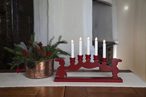 STAR 643 - 45 Nisse Duo Candelabro 5 Luci Legno Rosso 30 x 43 cm