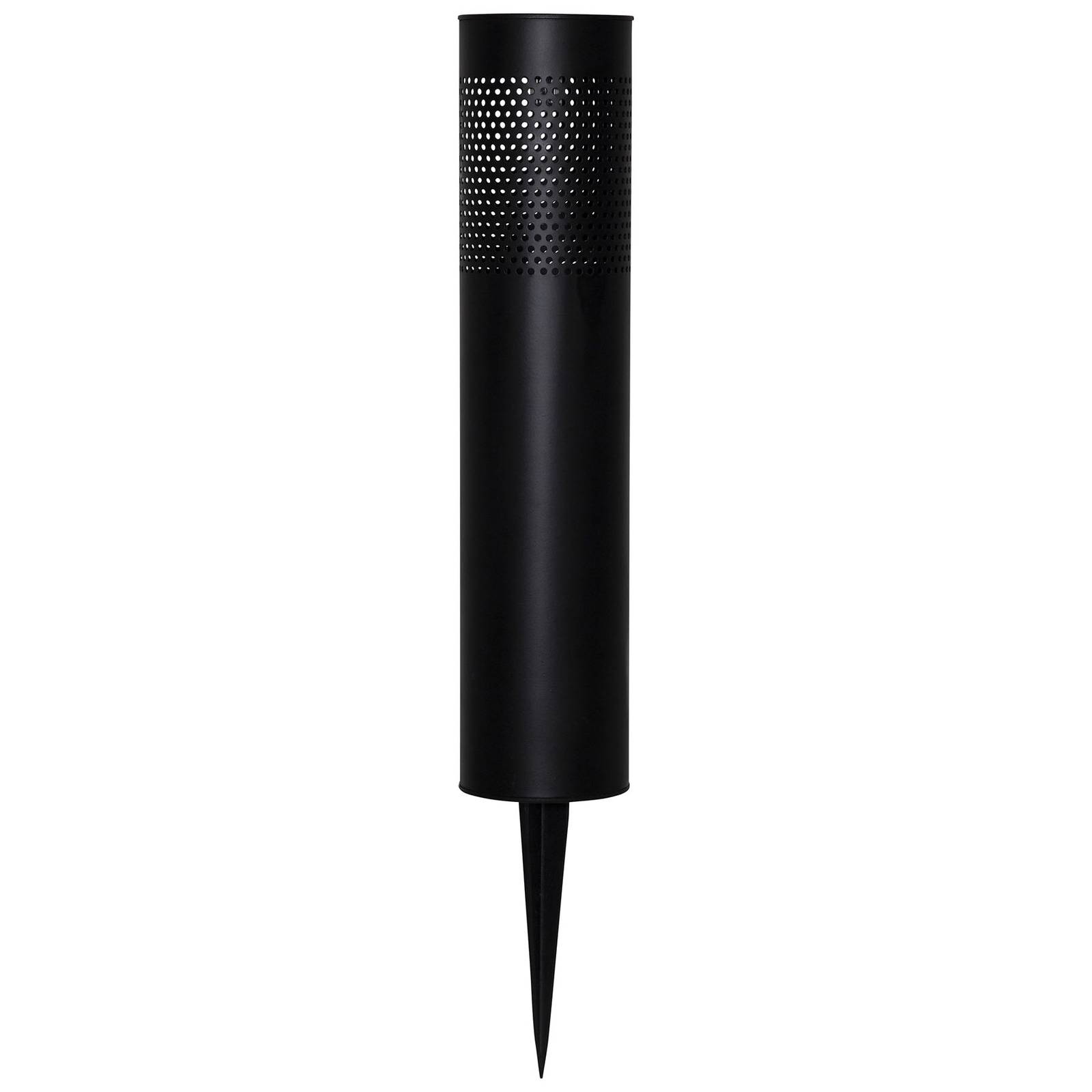 Lampada a LED a terra Blace con pannello solare Per l'illuminazione decorativa del giardino, il LED a terra può essere utilizzato in modo libero e indipendente in tutta l'area esterna. L'unica cosa importante è che il pannello solare sia esposto al sole o alla luce del giorno. La luce solare è dotata di un picco di terra che scompare completamente nel terreno. L'apparecchio cilindrico in metallo verniciato nero è dotato di una sottile perforazione nella parte superiore, attraverso la quale la luce del LED bianco caldo all'interno brilla dolcemente. - con sensore giorno/notte - Durata della luce circa 6 ore - con interruttore