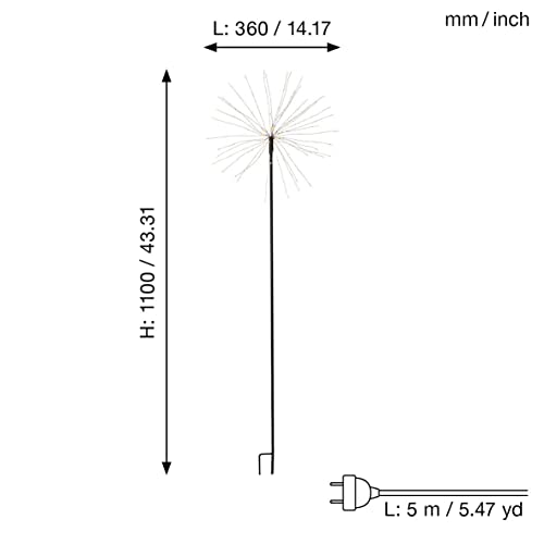 Star Trading, lampada da terra con picchetto natalizio, colore nero, per esterni, fuochi d'artificio bianco caldo, con cavo, altezza: 110 cm, IP44