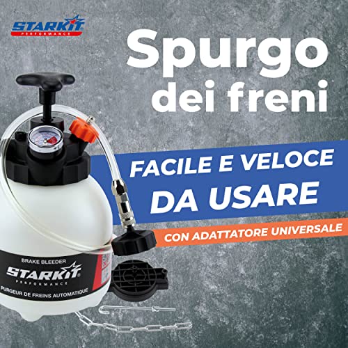 STARKIT PERFORMANCE Kit spurgo freni + bottiglia di recupero olio frein auto. Spurgo liquido freni 3 litri con 2 adattatori universale. Pompa per spurgo multimarca per spurgo sistema dei freni