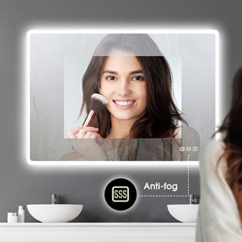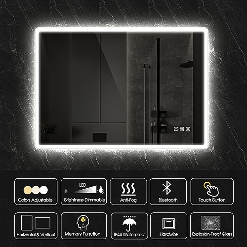 STARLEAD Specchio-Bagno-con-Luce 60x80 cm, Specchio-Bagno-LED con 3 Temperature Colore e Dimmerabile e Antifog, Specchio-Retroilluminato-Bagno con Bluetooth e IP44, Orizzontale & Verticale