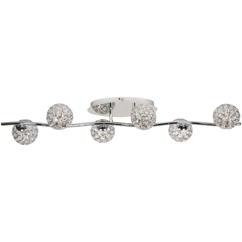 illuminerà perfettamente l'interno del soggiorno, dell'ingresso e della stanza di un elegante junior Materiale: paralume in metallo con cristalli, base in metallo Colore base: cromo Altezza: 13 Larghezza: 81 Profondità: 13 Dimensioni (altezza/larghezza/profondità): 13x81x13 Peso (netto): 1.40 LED integrato: No Numero di sorgenti luminose: 6Include una sorgente luminosa: SìNumero di sorgenti x base: 6xG9