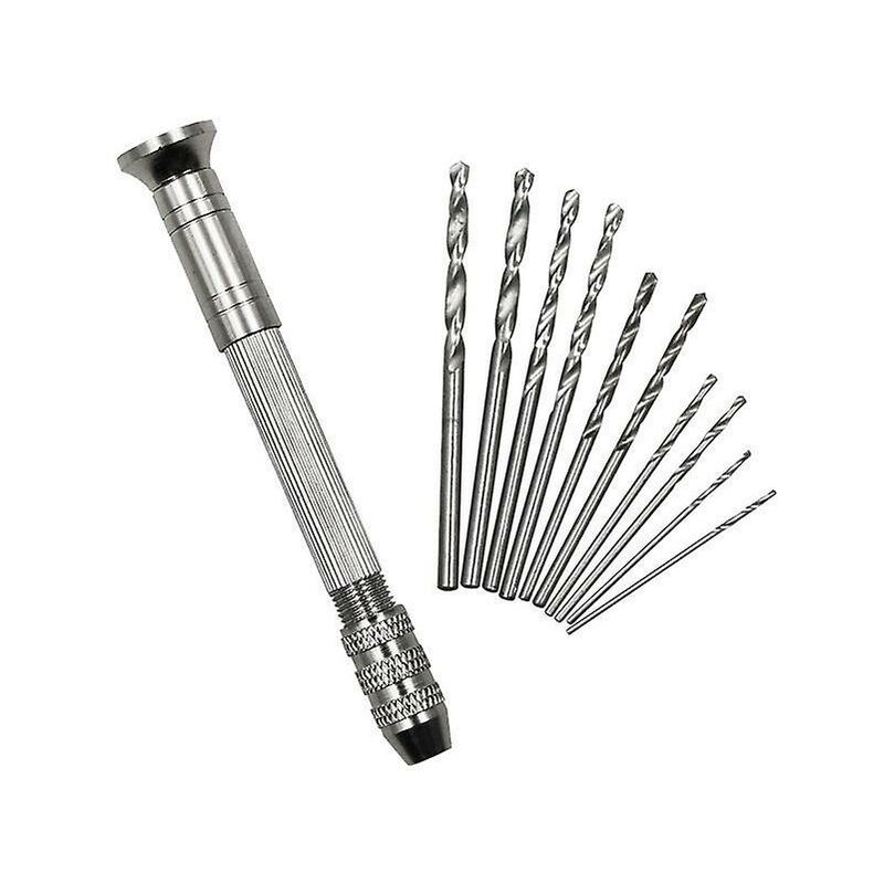 Materiale in lega La micro punta da trapano è realizzata in acciaio ad alta velocità e durevole. Dopo un uso ripetuto, la punta non scivola o cade e ha una lunga durata. E può regolare la punta elicoidale con un diametro di 0,8-3,0 mm. Applicabile con precisione L'uso più comune è la perforazione di precisione quando si lavora su piccoli progetti. L'impugnatura ergonomica consente di avere la giusta quantità di leva quando si ruota la morsa del mandrino, offrendo velocità e precisione. Ampia applicazione Questa mano del trapano a colonna viene utilizzata per tenere e ruotare piccole punte da trapano per lavorare su modelli, legno, resina, gioielli, noci, cera d'api, plastica e molti altri progetti fai-da-te che richiedono fori precisi . Nota: la morsa a perno regolabile è uno strumento manuale, non uno strumento elettrico;