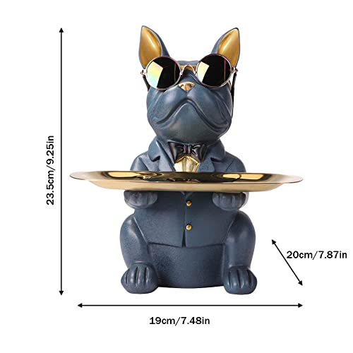 Starnearby Bulldog Statua Vassoio, Svuotatasche da Ingresso Design, Bulldog Portaoggetti Vassoio, Vassoio da Scrivania Bulldog in Resina, Vassoio Portachiavi Ingresso, Statue Bulldog Francese