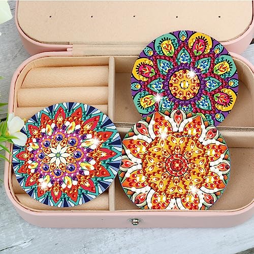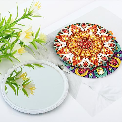 Starnearby 3 Pezzi Specchio Tascabile Piccolo Mini Specchio Trucco DIY Diamond Painting Specchietto da Viaggio Piccolo Modello Mandala Specchio Compatto per Donne Ragazze Viaggio Lavoro Scuola