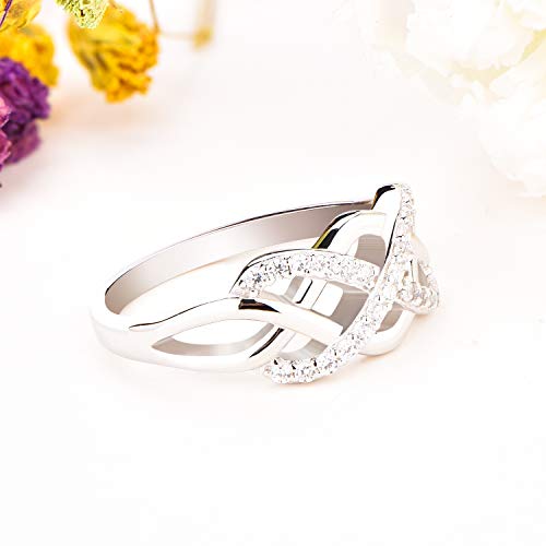 Starnny Anelli Donna Argento 925,Anelli Infinito Nodo Celticoo with 3A Zirconia Cubica con Regali di Gioielli Placcati Oro Bianco per Donna Ragazze