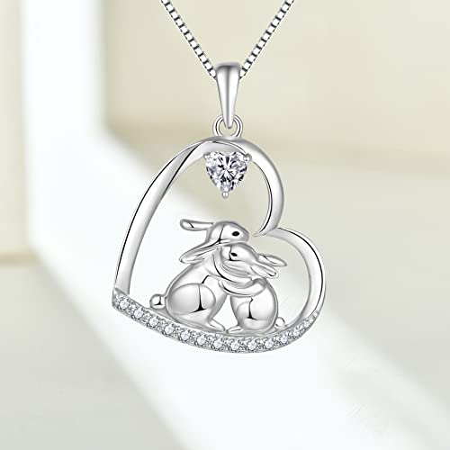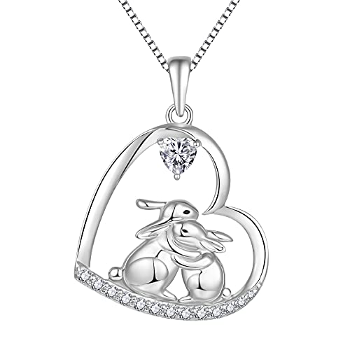 Starnny Collana Donna Argento 925,Ciondolo Coniglio sulla Luna con Cubic Zirconia 3A per Donna D
