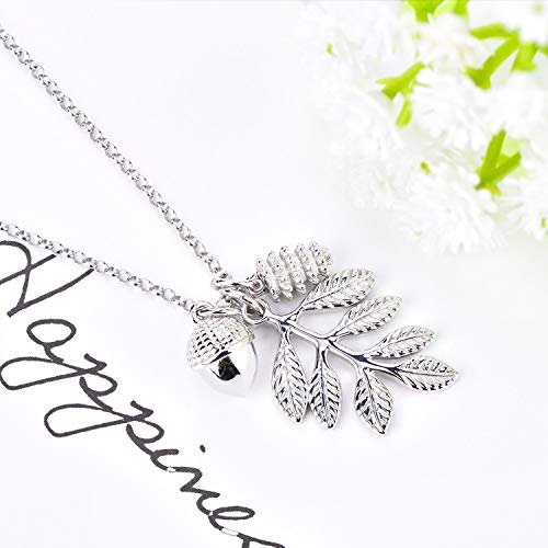 Starnny Collana Donna Argento 925, Collana Pigna di ghianda Foglia con Placcato in oro Bianco Regali di Gioielli per Donna