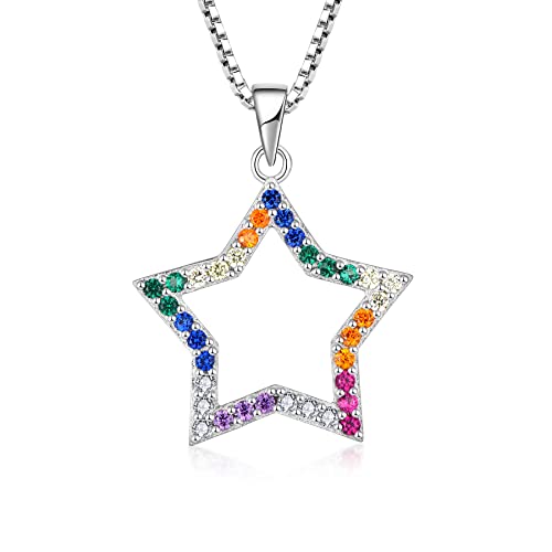 Starnny Collana Donna Stella Arcobaleno Argento 925 Zirconia Cubica 3A Collana oro bianco regalo per lei