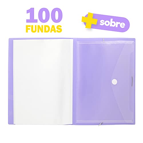 Starplast Cartelle Con Fodere - Cartelle in Plastica, Raccoglitore, Portadocumenti, Chiusura Elastica, Formato A4, per Uso Scolastico e Ufficio - 100 Fodere Lilla