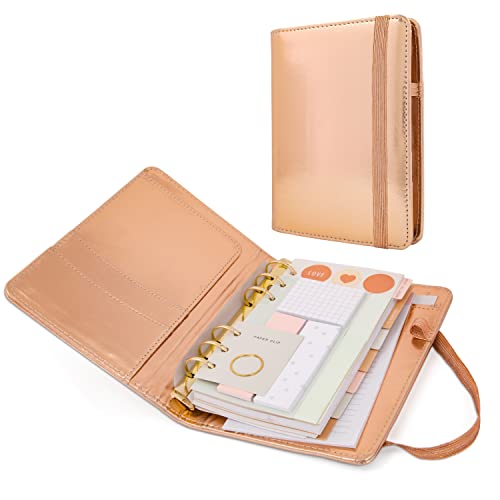 Design elegante e pratico: L'ordine non è confuso con l'estetica! Organizer a 6 anelli con elastico di chiusura, colore oro rosa con effetto metallizzato per dare vitalità e brillantezza. Dimensioni 19 x 14 x 4 e fogli di dimensioni 17 x 9,5 cm. Sul retro c'è una dimensione di elastico per penne, matite, pennarelli per essere con gli strumenti completi per qualsiasi evento. I giorni della settimana sono in inglese e non hanno anno, puoi organizzarlo a tuo piacimento
