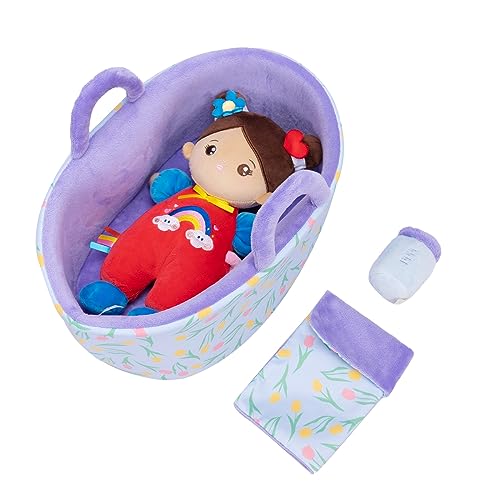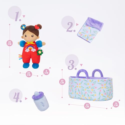 Starpony 25cm Bambola di Pezza Set per Bambina Ragazza, Bambole di Peluche in pelle marrone, Culla, Biberon e Trapunta per Bambini,Regalo Giocattolo Stoffa, Morbida, per Dormire