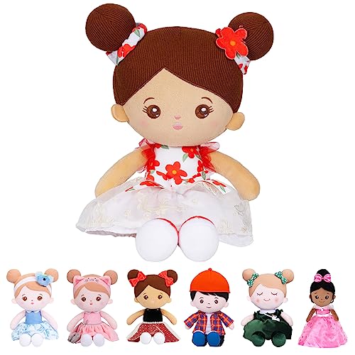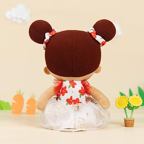 Starpony OUOZZZ Bambola di Pelle Marrone,Bambole Per Bambina,Regalo Bambola Bambina 1 2 3 4 Anno,Giocattolo Morbido e Sicuro,38CM,Bambola Vestito Bianco