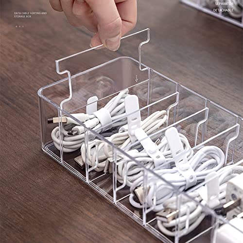 STARRY G Scatola organizer per cavi con coperchio, 8 griglie in acrilico, scatola portaoggetti per caricabatterie, ciabatte e cavi, scatola trasparente per la gestione dei cavi, 12 adesivi