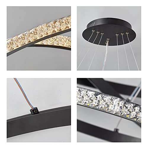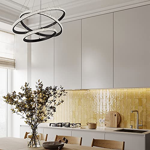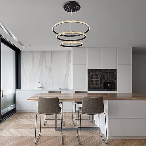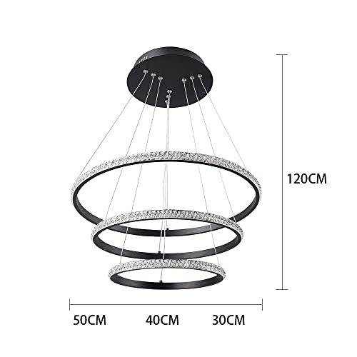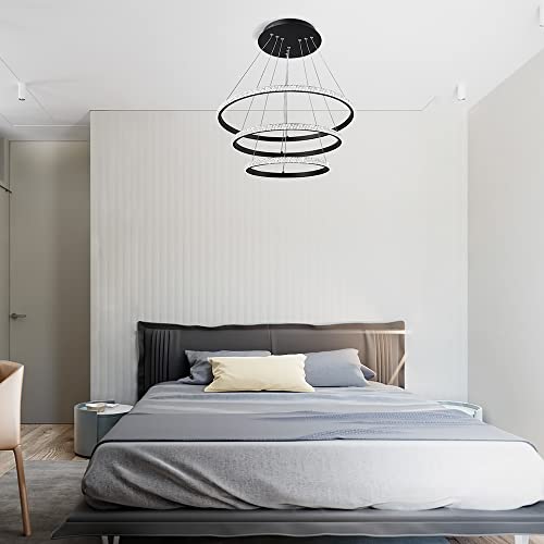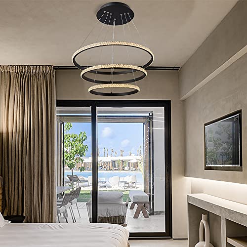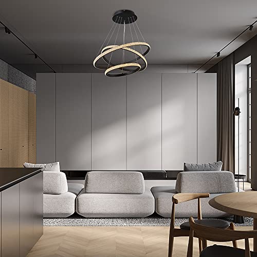 STARRYOL Lampada a sospensione moderna a LED, lampadario a sospensione regolabile a 3 anelli, plafoniera contemporanea per soggiorno, camera da letto, hotel, ecc., Dimmerabile 3000k- 6000K