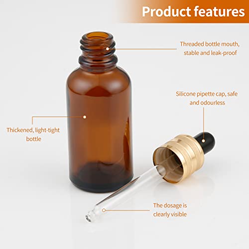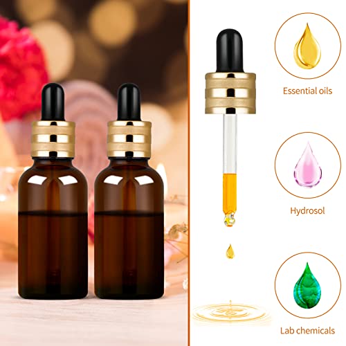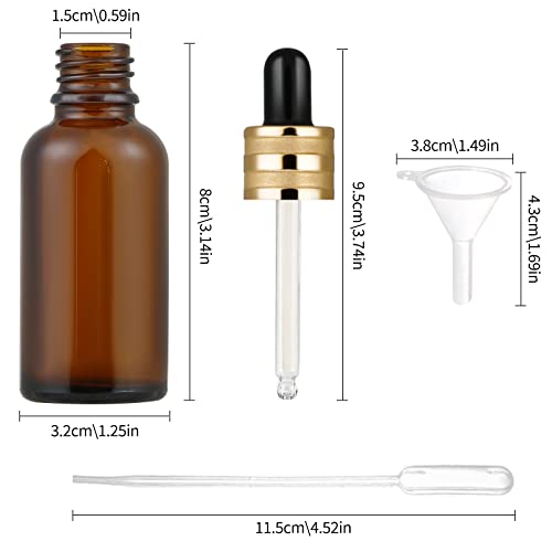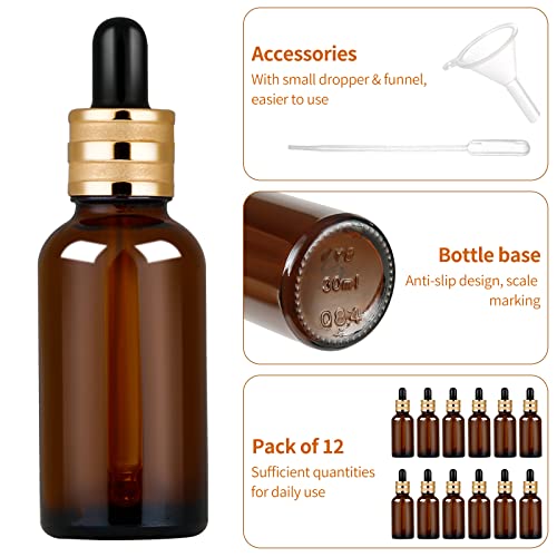 StarryTiger 12pcs 30ml Bottiglie Contagocce Vetro, Flaconi Bottiglie Contagocce in Vetro Ambrato con Pipette Contagocce per Laboratorio, Olio Essenziale, Aromaterapia