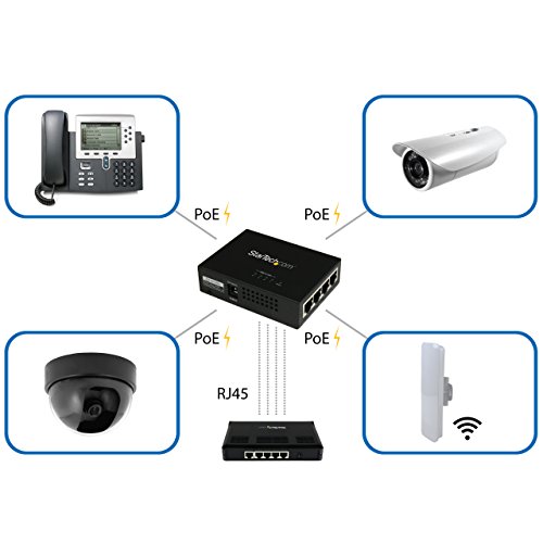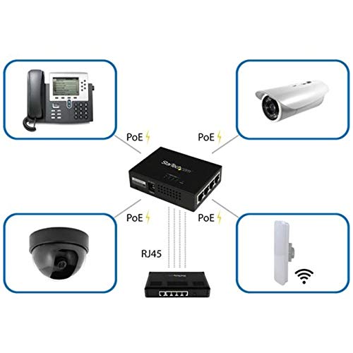 StarTech.com Adattatore Iniettore midspan a 4 porte Gigabit Power over Ethernet (PoE) Montaggio a parete 30,8W, 802.3at/af