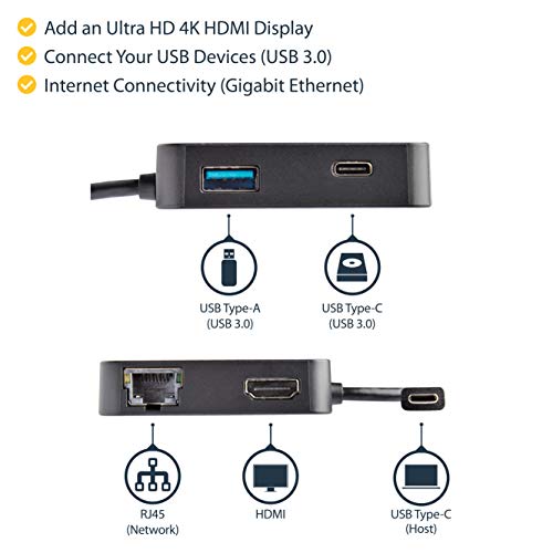 StarTech.com Adattatore Multiporta USB, C per Portatili, 4k HDMI, GbE, USB Tipo C, USB, A, Alimentato