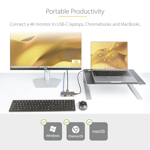 ADATTATORE MULTIPLA 5-IN-1: il dock portatile USB C da viaggio supporta video UHD 4K 60Hz HDMI 2.0b (HDR10) tramite DP 1.4 Alt Mode per il collegamento di un monitor/display, hub USB-A a 3 porte (3x USB 3.2 Gen1 5Gbps), 100W USB-C PD Pass-Through.