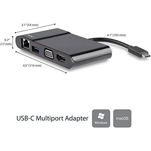 StarTech.com Adattatore USB-C a HDMI 4K o VGA 1080p - Gigabit Ethernet, 5Gbps, USB-A 3.0 - Mini Dock USB type C da viaggio - Fuori produzione, sostituito da DKT31CHVL (DKT30CHV)