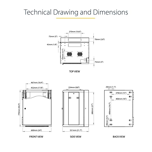 StarTech.com Armadio Rack 19" 15U a Muro - Server Rack 19" Profondo 40.5 cm per Switch/Dispositivi di Rete/AV, Rack Dati Ventilato con Ripiano e Pannelli Laterali Rimovibili - Assemblato (RK1520WALHM)