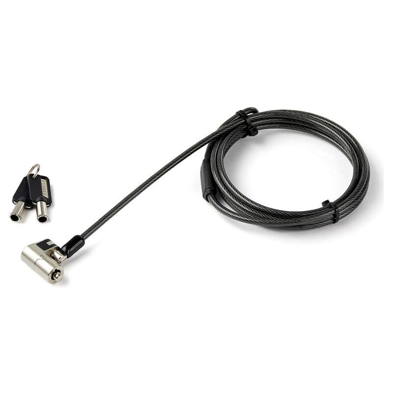 Cavo di sicurezza portatile | Cavo in acciaio | Pulsante Push-to-Lock Trovare il blocco di sicurezza giusto per proteggere il laptop dai furti non è mai stato così facile. Questo cavo di sicurezza universale a chiave 3 in 1 per computer laptop è compatibile con i più comuni slot per blocco di sicurezza. Le testine di blocco intercambiabili sono compatibili con tre diversi slot per blocco di sicurezza: Kensington K-Slot, Kensington Nano e Noble Wedgelock. È il metodo ideale per proteggere il computer laptop, ad esempio un notebook HP o Dell XPS, o altri dispositivi come monitor, docking station, proiettori e box esterni per unità disco. Grazie al design a chiave, non è necessario dover ricordare una combinazione, permettendo di proteggersi con facilità in ufficio o in viaggio. Comoda funzione di blocco a pressione La funzione di blocco a pressione consente di risparmiare tempo ogni giorno. Basta una semplice pressione e il blocco si attiva, senza bisogno di utilizzare la chiave.