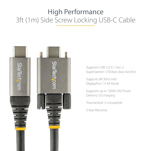 StarTech.com Cavo USB-C con viti di bloccaggio laterali da 50cm, Cavo da USB-C a USB-C 5Gbps, USB-C 3.2 Gen 2 Type-C, 100W (5A) Power Delivery, Supporta DP Alt Mode (USB315CCV2M)