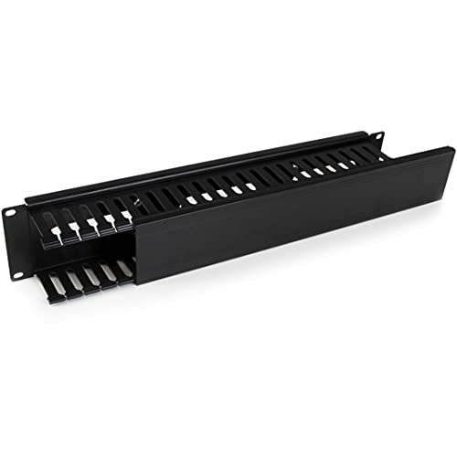 StarTech.com Pannello Gestione Cavi Orizzontale per armadi rack 2U con canalina passacavi a denti e coperchio, Pannello Passacavi a gabbia per armadio rack 19" (CMDUCT2U)