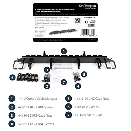 StarTech.com Pannello Gestione Cavi Orizzontali per Armadi Rack 1U da 19" con Anelli Guida