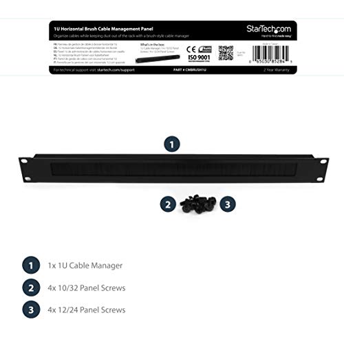 StarTech.com Pannello di gestione cavi per server rack orizzontale con spazzola a listello robusta 1U, Acciaio, (CMBRUSH1U)