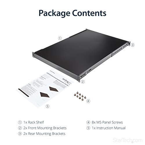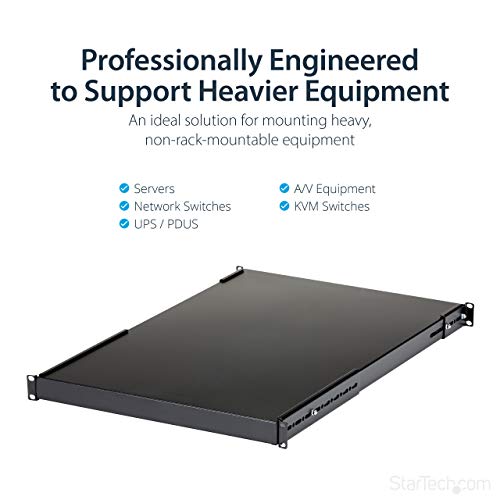 StarTech.com Ripiano 1U per armadio rack 19", Robusta Mensola Universale per amadio server rack 19 pollici con profondità di montaggio regolabile da 49,5 a 97,4cm, Capacità 150 kg (ADJSHELFHD)