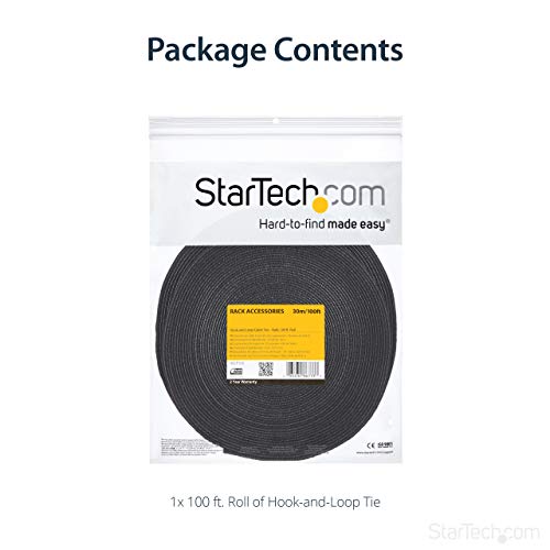StarTech.com Rotolo di nastro a strappo da 30,5 m, Fascette riutilizzabili da tagliare su misura, Fascette serracavo in tessuto con fissaggio a strappo per cavi industriali, Nero (HKLP100)