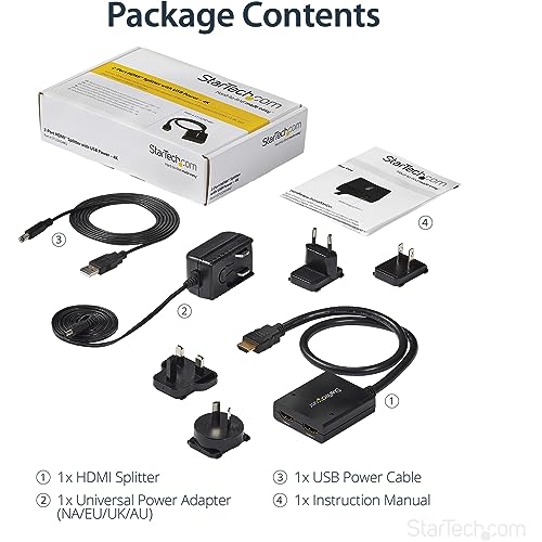 StarTech.com Sdoppiatore Splitter Video HDMI 4k @ 30hz 1 ingresso 2 uscite 1x2 Alimentato via adattatore o USB