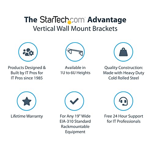 StarTech.com Staffa rack in acciaio 19" 1U - Staffa di montaggio verticale per apparecchiature di rete e dati (RK119WALLV)